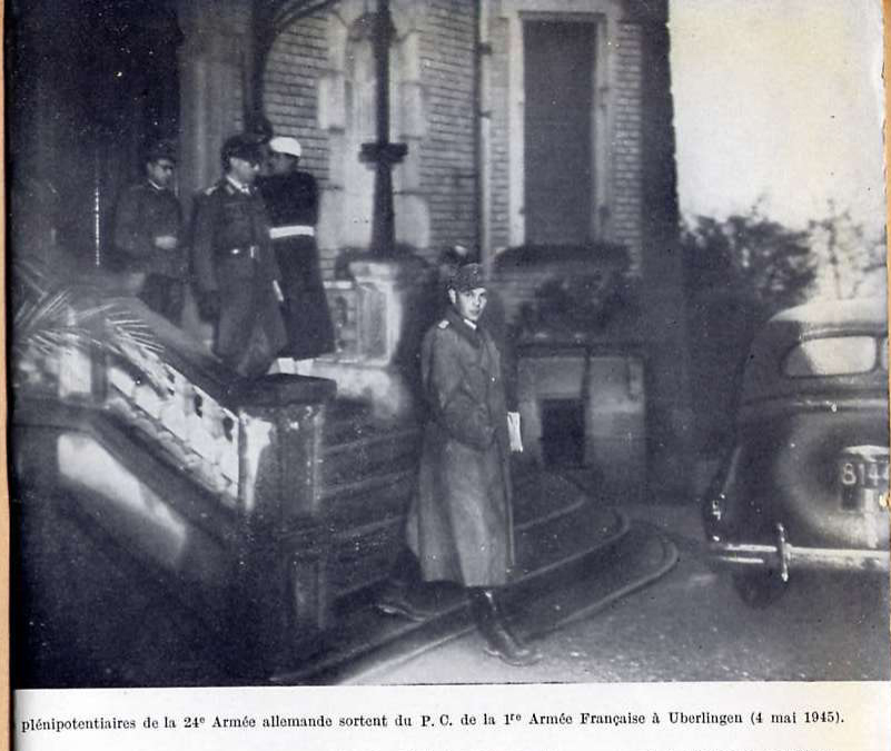 Merker schickte am 6. Mai 1945 zwei Emissäre seines Stabes, Major Bock und Fräulein Kimmig, die perfekt Französisch sprach, zur französischen Kommandantur nach Egg und bot die